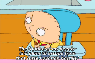 The fruition of my deeply-laid plans to escape from that cursed ovarian bastille! Return the device, woman!