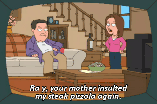 Ra y, your mother insulted my steak pizzola again.