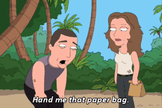 Hand me that paper bag. Jack, that's got my poop in it. I know, I know. It's got a hint of coconut in it. And something else... But that's part of the mystery.
