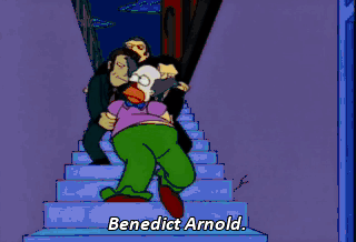 Benedict Arnold. The same Benedict Arnold who plotted to surrender West Point to the hated British? D'oh! I am a-so glad I had a chance to meet you... before we did this, Krusty,