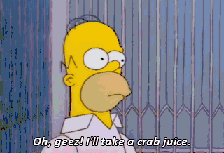 Oh, geez! I'll take a crab juice. Uh-oh. Uh, you got a men's room in there?