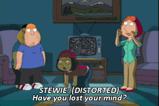 STEWIE: (DISTORTED) Have you lost your mind? PETER: And, Lois, get ready to laugh. Get ready to laugh. Gee, must've taken a wrong turn at Albuquerque. (LAUGHING)