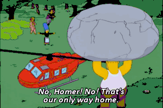 No, Homer! No! That's our only way home. Yeah, but- Okay. Oh! That Lenny sure had a crazy apartment. Oh, it sure is good to be home.