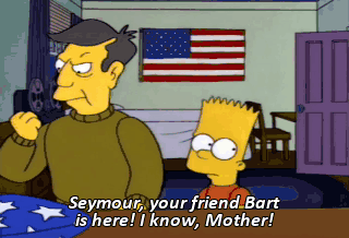 Seymour, your friend Bart is here! I know, Mother! - Seymour, do you want me to tell you when it's 7:30? - No, Mother!