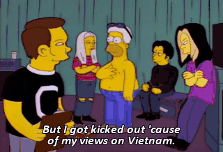But I got kicked out 'cause of my views on Vietnam. Also, I was stealing projectors.