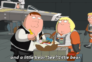 and a little bear. See? Little bear. "Hey, Luke, we had fun on the Death Star." Well, take care of yourself, Han. I guess that's what you're best at. Oh, look! A light saber cheese knife!