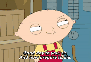 Good day to you, sir. And now prepare to die. (SCREAMS)