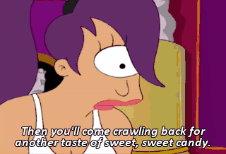 Then you'll come crawling back for another taste of sweet, sweet candy. Bam. Ugh.
