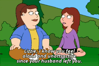 Lizzie, I know you feel alone and unattractive since your husband left you.