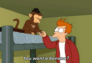 You want a banana? I don't eat bananas. I prefer banana-flavored energy bars made from tofu. I don't like you.
