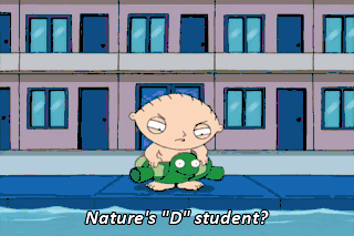 Nature's "D" student? Oh! Oh, This is marvelous! I feel like a young Johnny Weissmuller. Hey, Chris, aren't you coming in? Uh, Can I swim with my shirt on? No. You can't swim with your shirt on.
