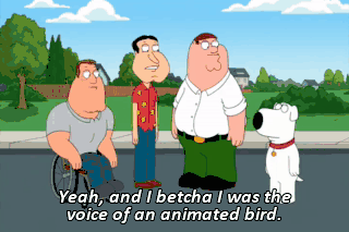 Yeah, and I betcha I was the voice of an animated bird. I thought I saw a cat. I did see a cat. Oh, my God, look at that.