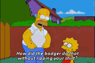 How did the badger do that without ripping your shirt? What am I, a tailor? Hmm!