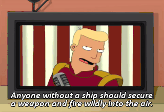Anyone without a ship should secure a weapon and fire wildly into the air. Well, you heard the windbag.