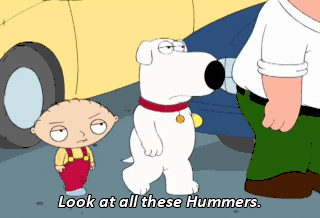 Look at all these Hummers. What kind of jerk would drive one of those?