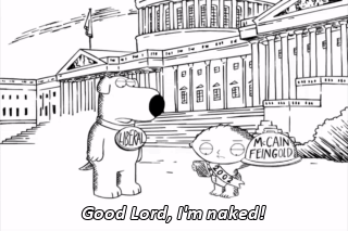 Good Lord, I'm naked! And why am I holding a dinner platter that says "McCain-Feingold"?