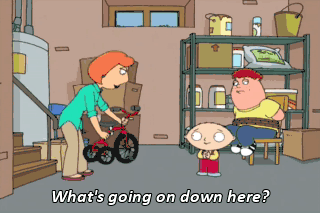 What's going on down here? Uh, We're playing house. That boy is all tied up.