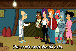This cattle prod should help. How will that... (SCREAMS) Get out there!