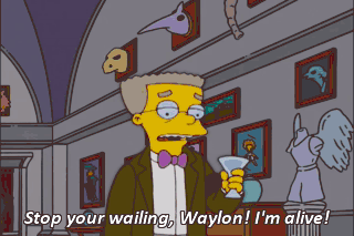 Stop your wailing, Waylon! I'm alive! MR. BURNS: Oops! That stays in.