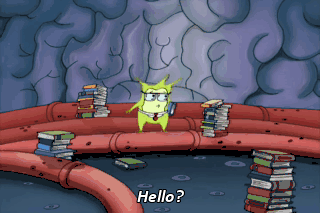 Hello? Wh-Where is everybody? I'm--I'm the only brain cell left. Well, At least I have my books.