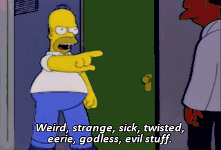 Weird, strange, sick, twisted, eerie, godless, evil stuff. And I want in. We don't, uh, know what you're talking about, Homer.