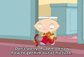 Don't worry, Rupert. I know how to get him out of his funk. Poor bastard's more upset than I was when I read Curious George Goes to His Gym Coach's Apartment. Monkeys aren't supposed to drink chardonnay!