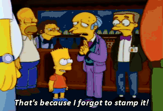 That's because I forgot to stamp it! Ah, that kid slays me. That was no accident. Let's get out of here. Na na nah nah Na na nah nah