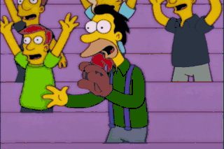Come on! Right here! I'm okay, folks. I need a shirt! Give me a shirt! Mommy has bosoms like that. Yeah, I wish. Neddie, I've had about all I can take of Homer Simpson's torso.