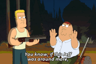 You know, if this Jeff was around more, we wouldn't have tried to kill you. See you later, schmucks! (BOTH GRUNT) Uh.