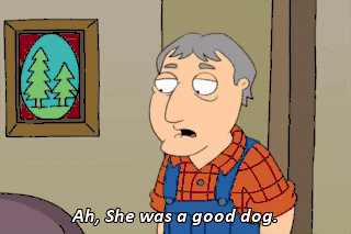 Ah, She was a good dog. "Was"? Y-You mean-- Last year. She went real peaceful. Oh. Well, she--She probably wouldn't have wanted to see me anyway. That's not true! Biscuit loved all her puppies! Biscuit!