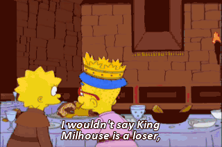I wouldn't say King Milhouse is a loser, but that's the 12th girl he's struck out with this week. Boil him in oil! So no 10:30 show?
