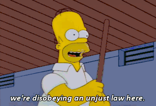 we're disobeying an unjust law here. We're patriots, like all those people in jail.