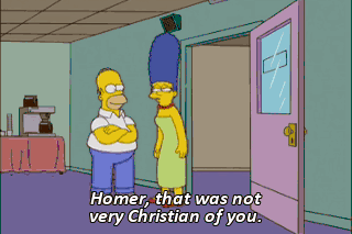 Homer, that was not very Christian of you. You’re right, Marge. I'll make it up to them- by throwing the "bitchin'est" beer bash this church has ever seen! JJ f Big Band: Lounge Jazz]