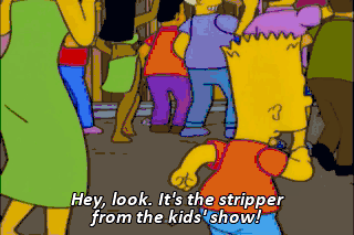 Hey, look. It's the stripper from the kids' show! She makes payin' attention cool. Oh!