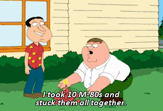 I took 10 M-80s and stuck them all together. I call it Peter Griffin's bunker-busting, mega-ultra super...