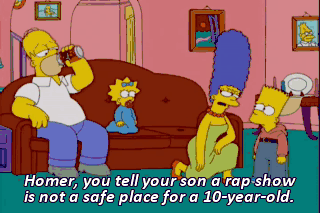 Homer, you tell your son a rap show is not a safe place for a 10-year-old.