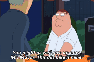 You might as well give up now, Mr. Mayor. This dirt bike is mine.