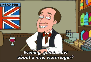 Evening, gents. How about a nice, warm lager? And help yourself to a packet of crisps. Or a ruddy nice plum pudding.