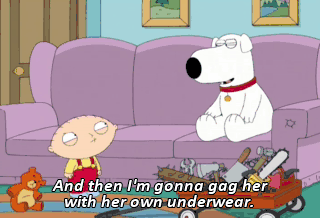 And then I'm gonna gag her with her own underwear. (LAUGHING) What? No, no, nothing, nothing.