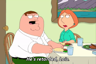 He's retarded, Lois. You should understand. You're married to a retarded man.