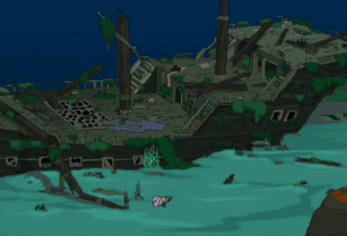 Careful, Fry. I think that flag might be poisonous. Ahoy, mateys!