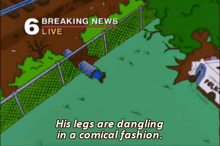 His legs are dangling in a comical fashion. Oh, it's the saddest thing I've ever seen. Arnie, Arnie, how are the children? I can't see through metal, Kent! All right, Fatty. Out of the pipe!
