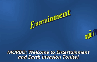 MORBO: Welcome to Entertainment and Earth Invasion Tonite! We'll be talking with General Extermulo,