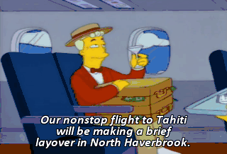 Our nonstop flight to Tahiti will be making a brief layover in North Haverbrook.