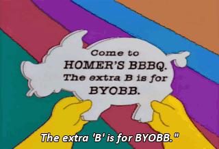 The extra 'B' is for BYOBB." What's that extra "B" for? That's a typo.