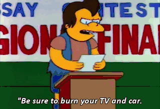 "Be sure to burn your TV and car.