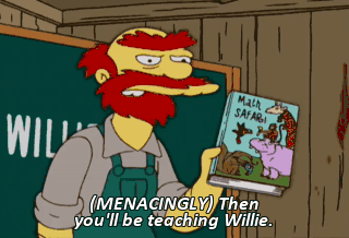 (MENACINGLY) Then you'll be teaching Willie. (WHIMPERS)