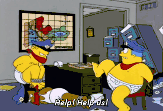 Help! Help us! They stole our uniforms, guns and Tasers! Ooh, fry, piggy. No, no, no, don't!