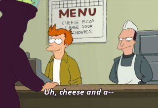 Uh, cheese and a-- That was quick. So, what do I owe you?