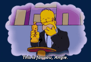 This is for you, Angie. We did it! ROBOT: Speeches cannot be longer than 30 seconds. (SCREAMS) Now, a tribute to those who have left us this past year. (WHIMPERS)